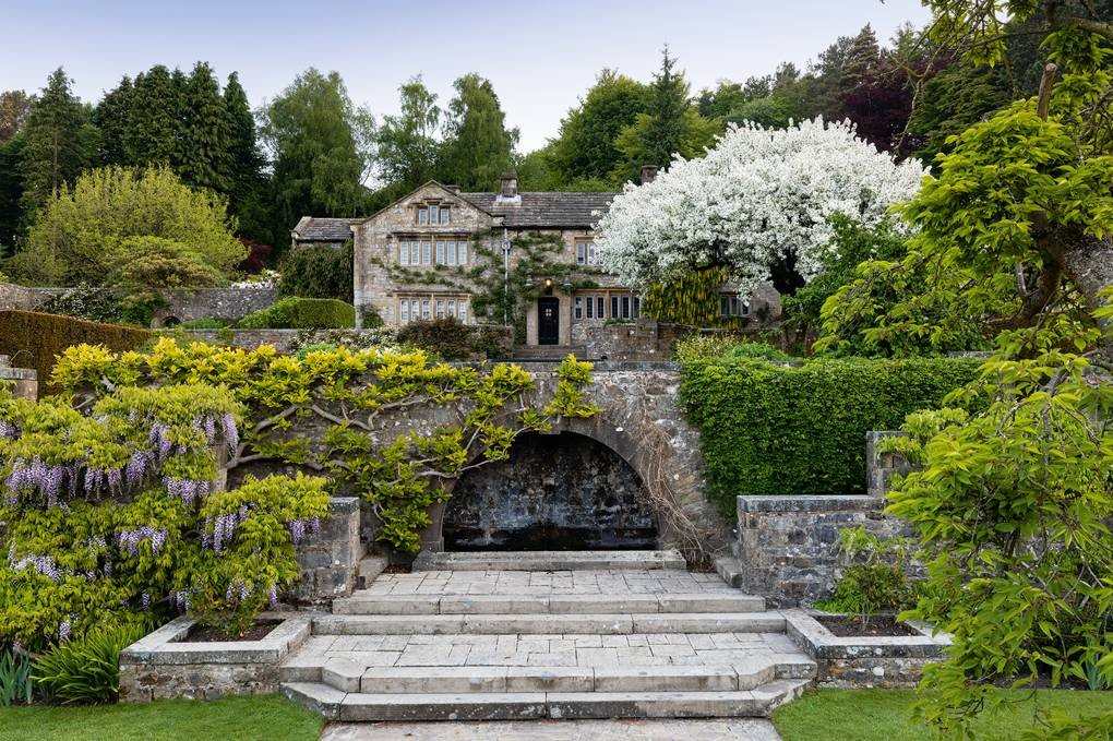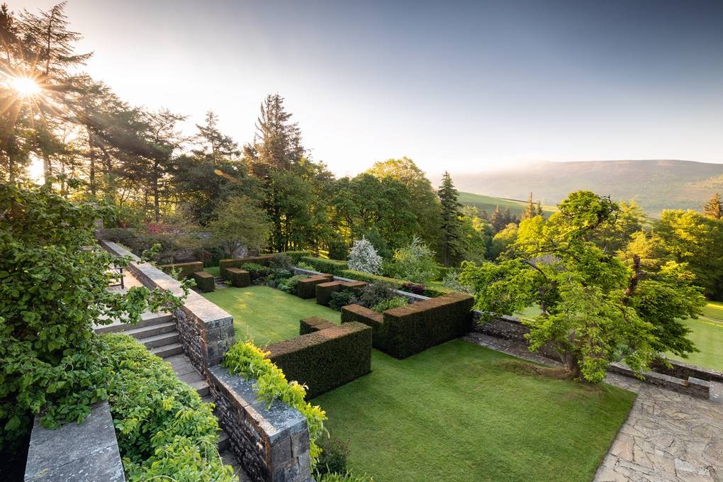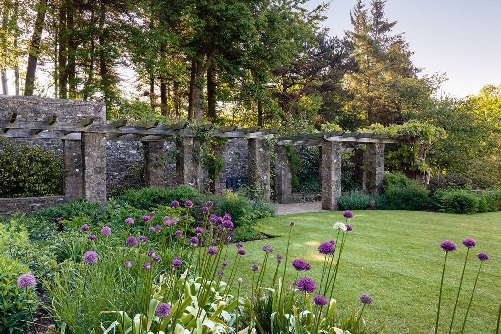 While the yew hedging has been clipped to replicate the shape and thickness of the walls (image 3) and the stone used for the garden walls is repeatedly used in the pergola supports (image 4).